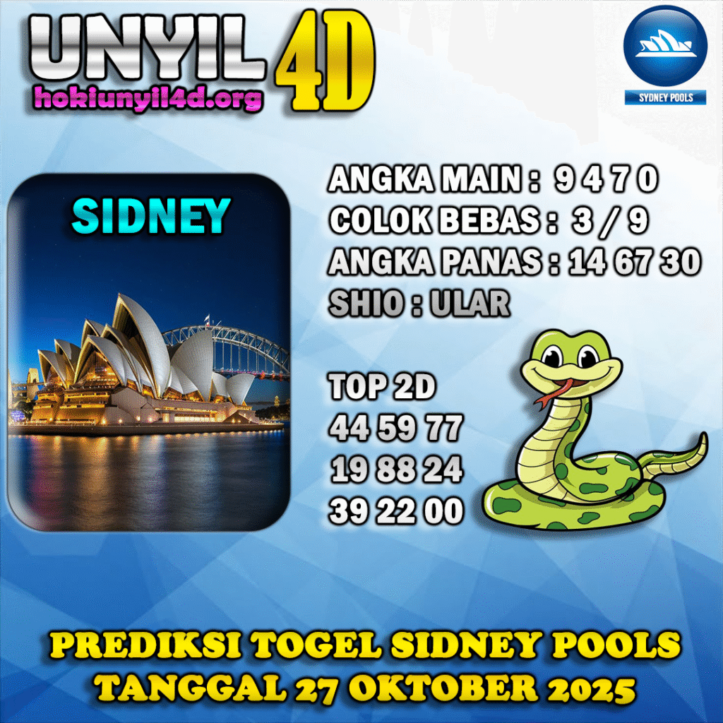 UNYIL4D – PREDIKSI TOGEL SIDNEY POOLS 27 OKTOBER 2025