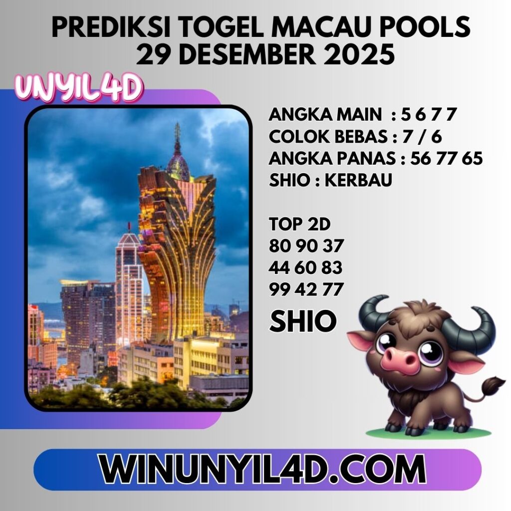 UNYIL4D – PREDIKSI TOGEL MACAU POOLS 29 DESEMBER 2025