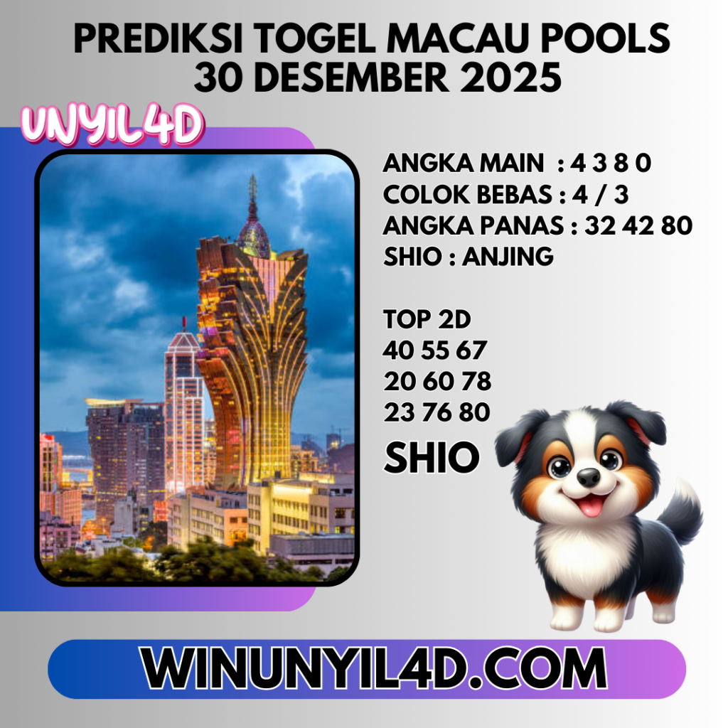 UNYIL4D – PREDIKSI TOGEL MACAU POOLS 30 DESEMBER 2025