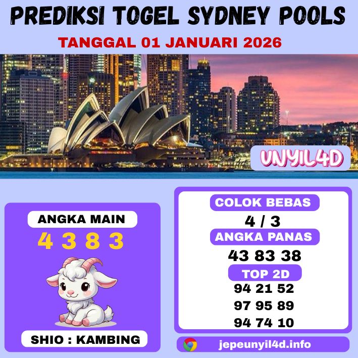 UNYIL4D – PREDIKSI TOGEL SYDNEY POOLS 01 JANUARI 2026