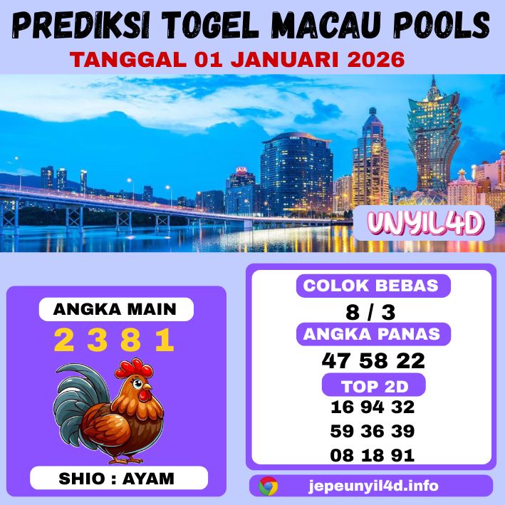 UNYIL4D – PREDIKSI TOGEL MACAU POOLS 01 JANUARI 2026