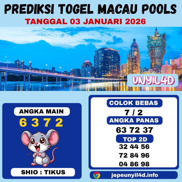 UNYIL4D – PREDIKSI TOGEL MACAU POOLS 03 JANUARI 2026