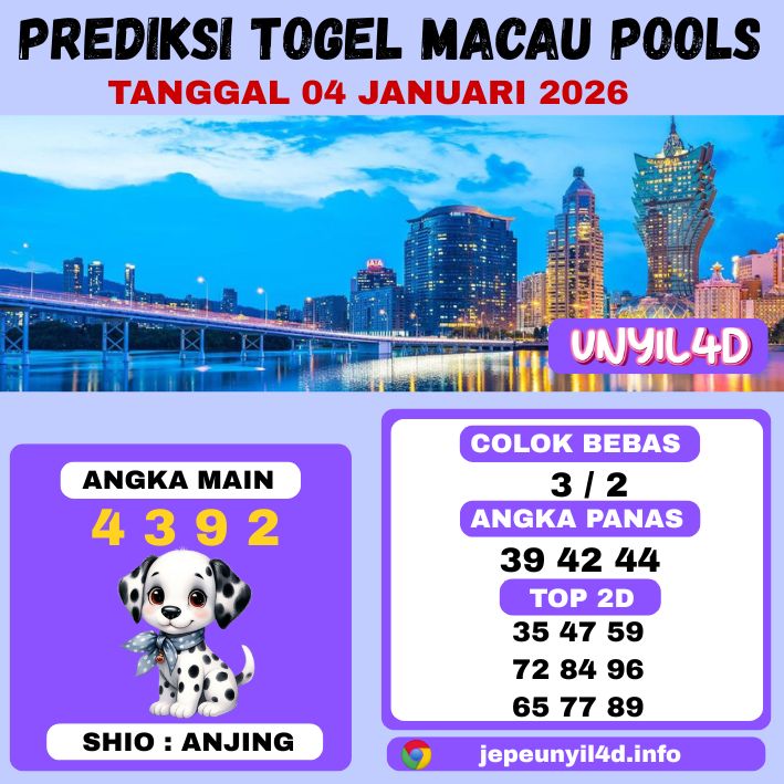 UNYIL4D – PREDIKSI TOGEL MACAU POOLS 04 JANUARI 2026